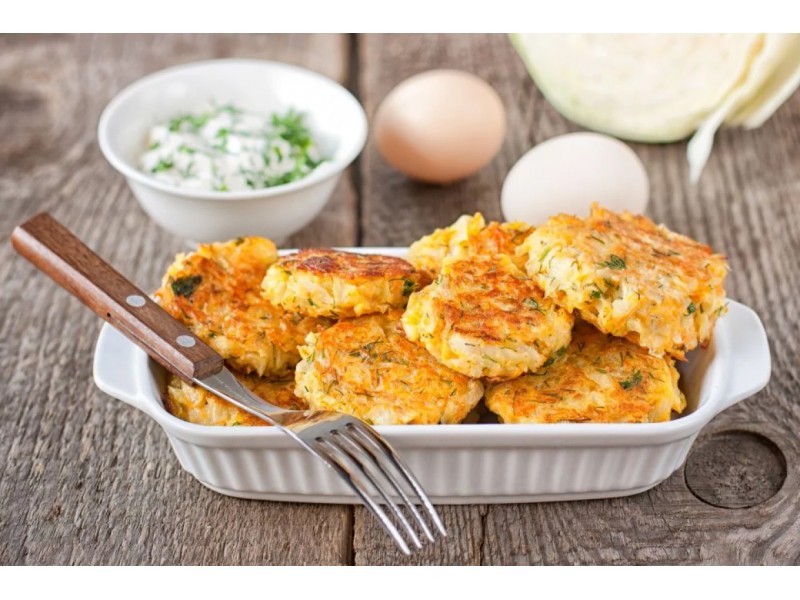 - Капуста – 500 г * Кабачки замороженные – 300 г * Зелень – 10 г * Чеснок – 2 зубчика * Мука – 100 г *