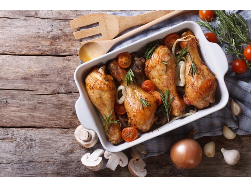 - Куриные ножки – 800 г * Помидоры черри – 200 г * Грибы замороженные– 250 г * Лук – 1 штука *