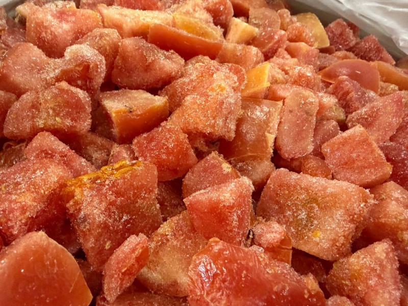 Овощное рагу или аджапсандали: Замороженные томаты — идеальная основа для любого рагу. Они создают ту самую наваристую, ароматную среду, в которой тушатся остальные овощи .