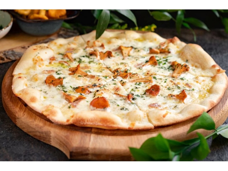 8.Выпекайте пиццу с лисичками 20 минут в духовке при температуре 180 градусов.