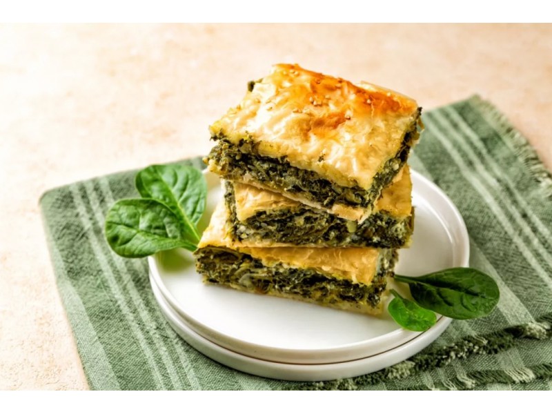 - Слоеное тесто (фило) – 400 г * Фета – 200 г * Шпинат – 400 г * Зеленый лук – 50 г * Укроп – 20 г *
