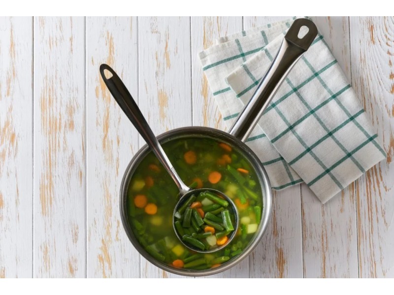 2.Вскипятите воду в кастрюле, добавьте черный перец, стручковую фасоль, картофель и морковь, проварите 10 минут.